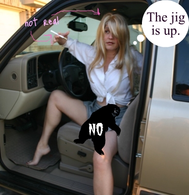 I swear to you, Jenny, you have made my day. I actually laughed out loud, close to an actual on the floor ROFL when I saw that picture with the bear (cat? beaver?) covering your hoo-ha. The thought of you can Victor sitting in your driveway taking pictures of your crotch just did me in. Thank you and goodnight.
