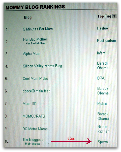 I love it. Every mommy blogger loves sperm, right?